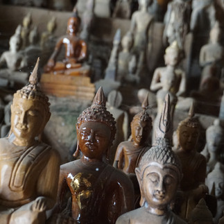 We hebben een privƩ boot met een bootsman die amper Engels spreekt, we noemen hem maar Mr. Lobster. Na bijna 2 uur varen over de Mekong komen we aan bij de grotten. Onderweg hebben we een stop gemaakt bij een whiskeydorp maar dit is gewoon een touristtrap. Binnen 5 minuten zijn we weer terug. Er zouden nog meer stops zijn maar volgens mij had hij door dat we daar niet op zaten te wachten.