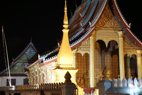 Vanaf Siem Reap vliegen we in anderhalf uur naar Luang Prabang met Vietnam Airlines. Als we uitstappen gaat de zon net onder en dat geeft een prachtig beeld en een mooie eerste indruk. Ik heb vooraf een E-visa aangevraagd maar ook met een visa on arrival ben je er redelijk snel doorheen. De chauffeur van het Chitdara hotel staat al op ons te wachten en brengt ons naar dit sfeervolle en centraal gelegen hotel. Na het inchecken gaan we op pad om Laotiaanse kippen te pinnen en een hapje te eten. Een Lao bier mag natuurlijk niet ontbreken!